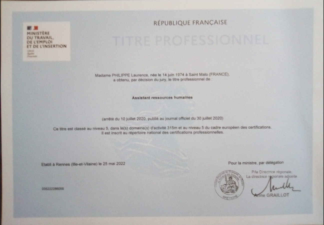 - Titre professionnel d'Assistante ressources humaines